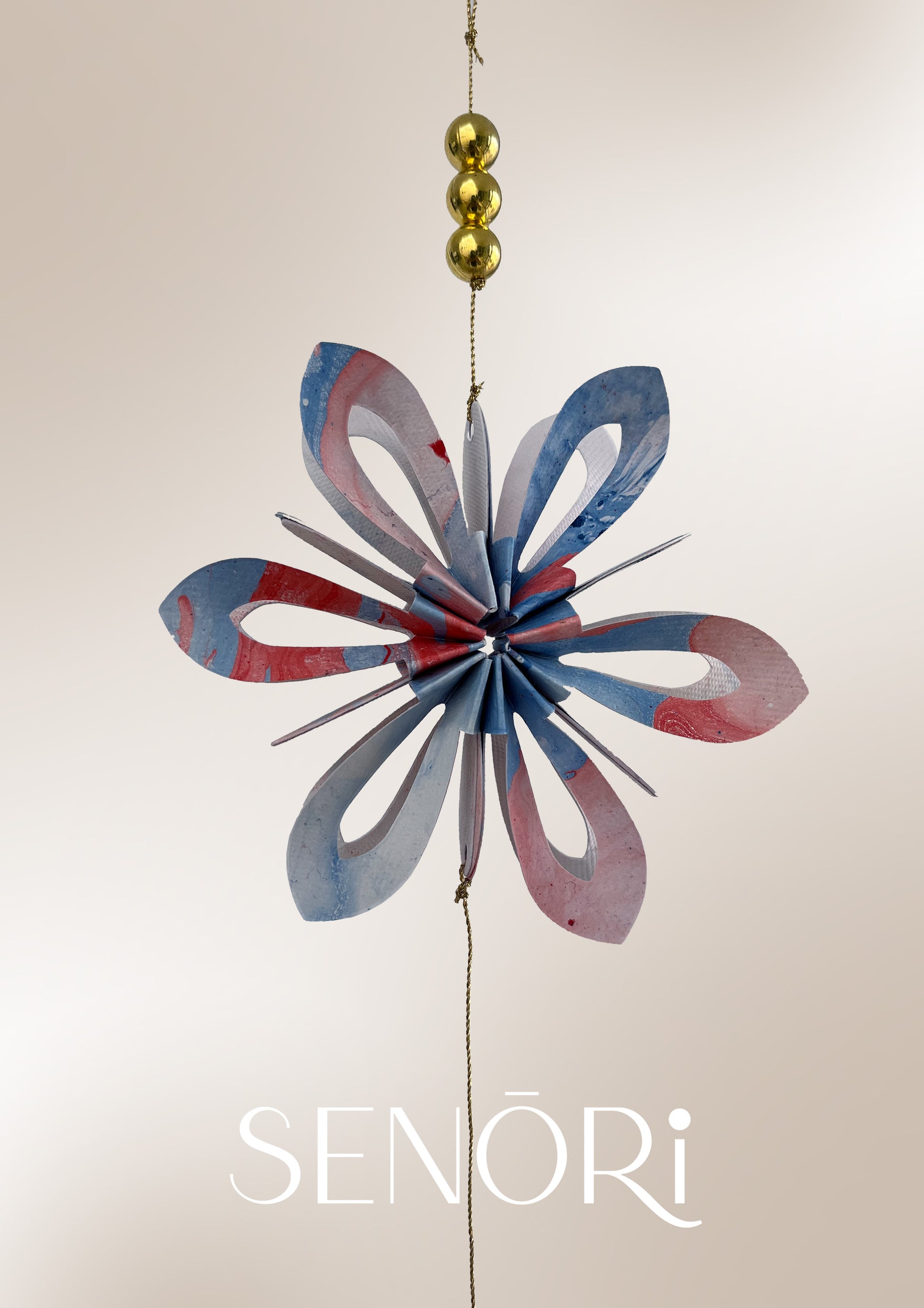 - 2 handcrafted 6-petal paper flowers in one hanging